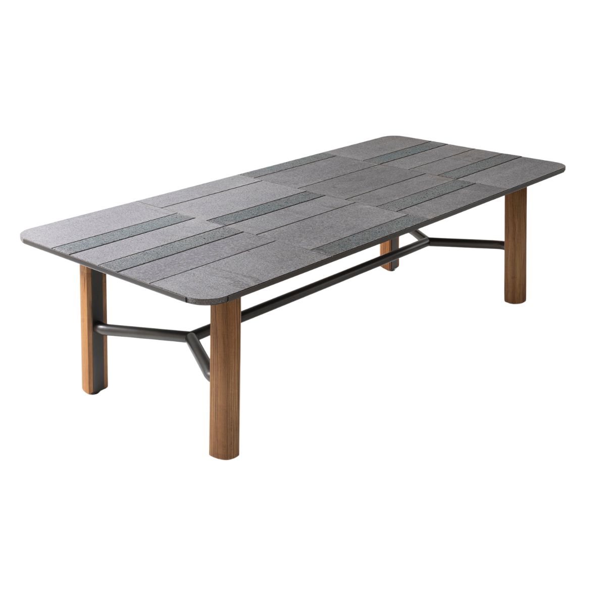 Pravokutni i kvadratni stol s okvirom od nehrđajućeg čelika AISI 316L obojenog kositrom i lakiranim nogama od punog tikovine. Gornja ploča sastoji se od ploča lave od Etne. Neke ploče obogaćene su staklenim prahom u tri varijacije boja: bisernoj, tirkiznoj i smaragdnoj. Vrtni stol Moorea kombinira boje i materijale u igri koja podsjeća na žive nijanse tipične za polinezijski otok.