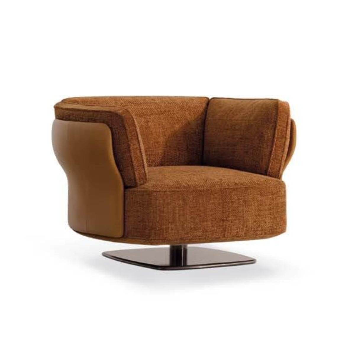 Fotelja iz kolekcije Saki ima elegantan oblik, s glatkim zakrivljenim linijama i udobnim jastucima s unutarnjom strukturom za ergonomski oslonac. Njezin okvir i naslon izrađeni su od aluminijskih elemenata, a dolazi u različitim bojama i materijalima poput tkanine ili kože. Također je dostupna s dodatnim podnožjem zaokruženog oblika, u rotirajućoj ili fiksnoj verziji, pružajući elegantnu i sofisticiranu udobnost.