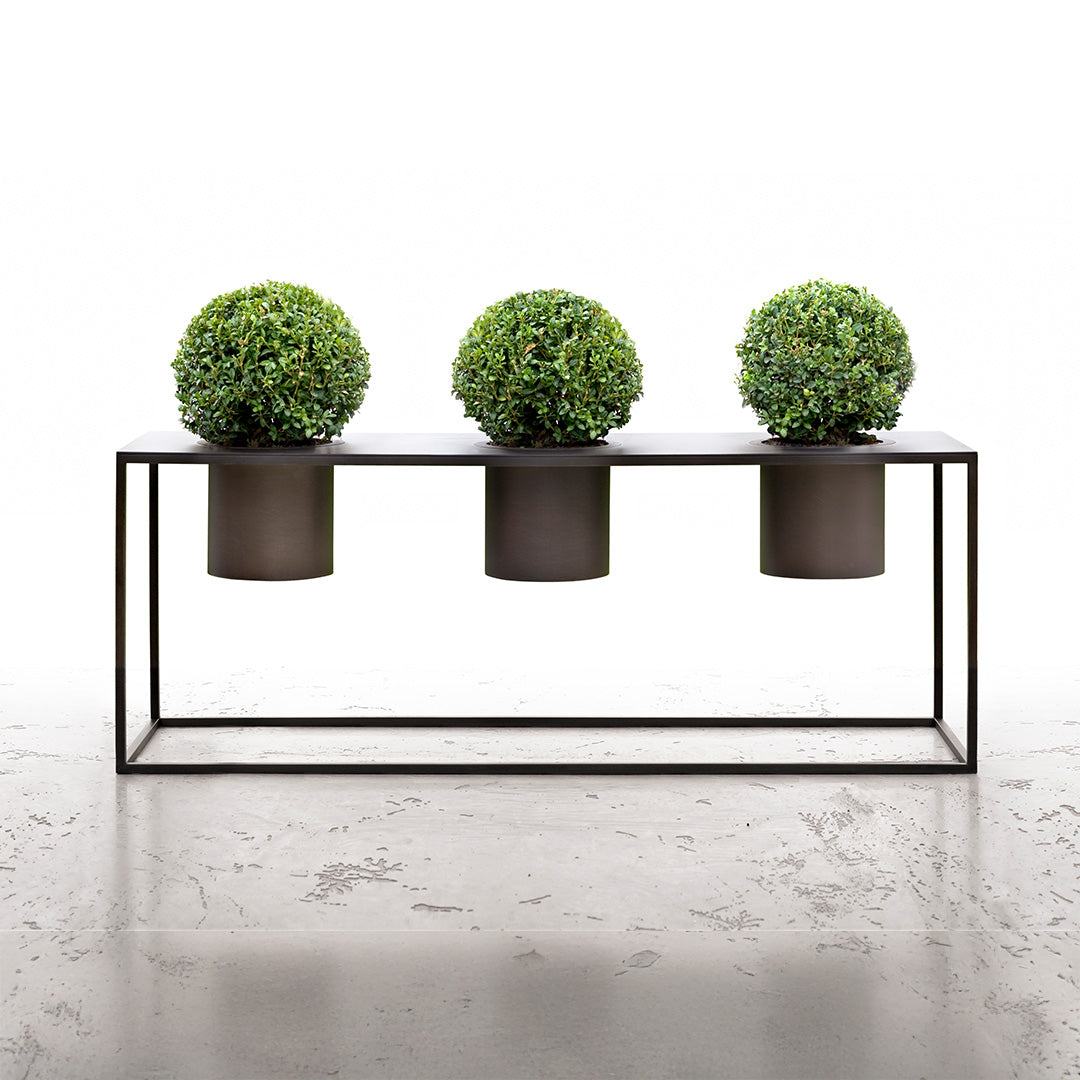 Minimalistički metalni cachepot. Zatvoreno dno za unutarnju upotrebu ili perforirano dno za vanjske prostore. Isporučuje se s unutarnjom plastičnom posudom za biljke.