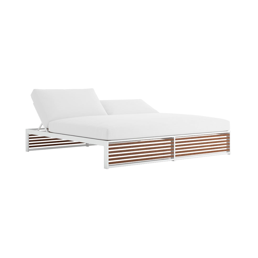 Ležaj za opuštanje DNA TEAK 200 prenosi igru svjetla i sjene kroz horizontalne geometrije koje nalazimo u arhitekturi nekih japanskih arhitekata, a karakteristične su i za mediteranske grilje. Savršen je dizajnerski ležaj za uživanje na otvorenom s partnerom i dijeljenje posebnih trenutaka s najboljim društvom… Vanjski ležaj DNA TEAK 200 izrađen je od obrađenih aluminijskih profila, dostupan u srebrno eloksiranoj verziji ili s praškastim premazom od izuzetno otporne boje posebno razvijene za vanjsku upotrebu, u širokoj paleti boja: pješčana, brončana, bijela, sivo ahatna, smeđonarančasta, vinsko crvena, crvenobež, plavosiva, crna, tamnozelena, cementno siva, kvarcno siva, antracit, sivosmeđa, sivo-plava. Jastuk je ispunjen poliuretanskom pjenom i presvučen vodoodbojnim platnom, dok se uklonjiva presvlaka može prilagoditi tkaninama za vanjsku upotrebu iz GANDIABLASCO kataloga, koje uključuju i kolekcije Sunbrella i Kvadrat, među ostalima.