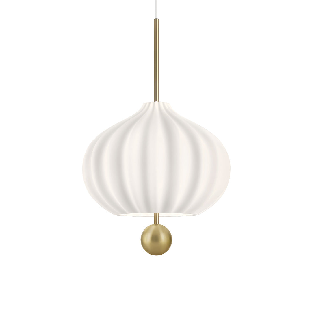 Poput sofisticirane zbirke botaničkih crteža, nježne linije Lilli prizivaju ljepotu rijetkog cvijeta. Njen oblik inspiriran je obrnuto okrenutom krunicom Martagon ljiljana, reinterpretiran u obliku originalne svjetiljke. Mekana forma difuzora od bijelog opalnog stakla savršeno se nadopunjuje s "tučkom" od satiniranog mjedi, stvarajući dodatno profinjen dojam. Viseća svjetiljka. Opalni difuzor izrađen je od dva sloja ručno puhanog stakla. Konstrukcija od satinirane mjedi.