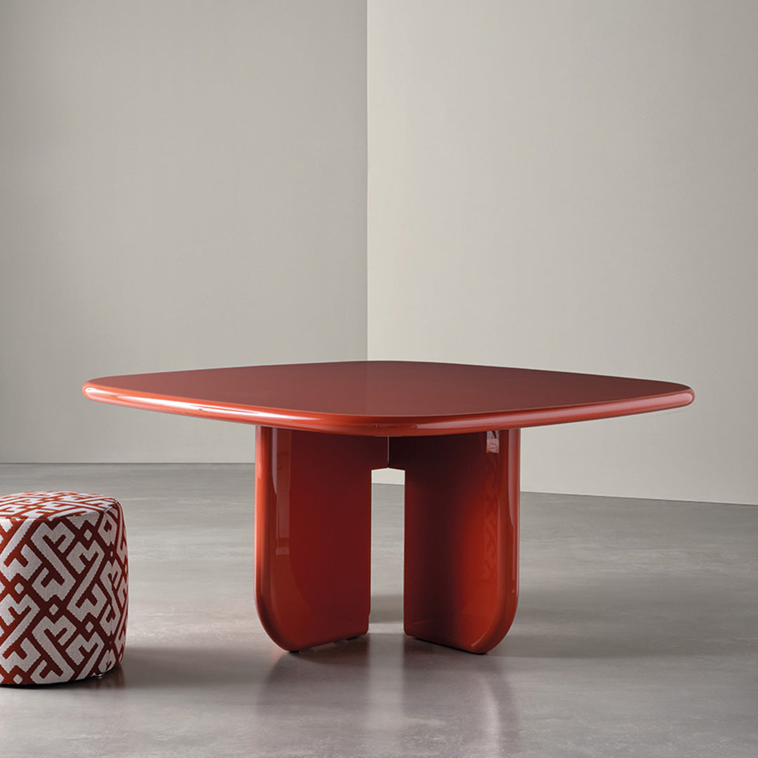 Dostupan u klasičnim formatima – okrugli, kvadratni i pravokutni (s zaobljenim uglovima) – pokazuje valovite linije s dijelovima naglašenima skulpturalnim i monumentalnim karakterom, i u ploči i u bazi s tri ili četiri noge.