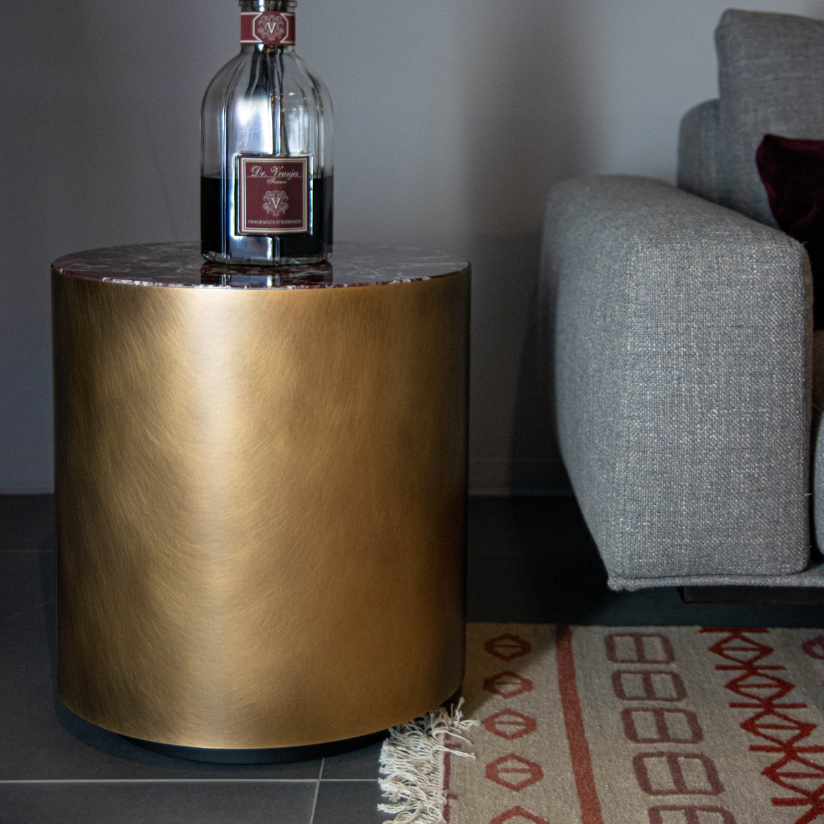 Belt klupski stolić odiše profinjenom elegancijom, zahvaljujući spoju brončane metalne baze i luksuzne ploče od Rosso Levanto mramora, prepoznatljive po bogatoj tamnocrvenoj boji i karakterističnim bijelim žilama. Geometrijski čistih linija, Belt unosi toplinu metala i plemenitost kamena u savršeno uravnoteženom obliku. Idealan je kao središnji komad u dnevnom boravku kojem želite dodati notu sofisticiranosti i karaktera.