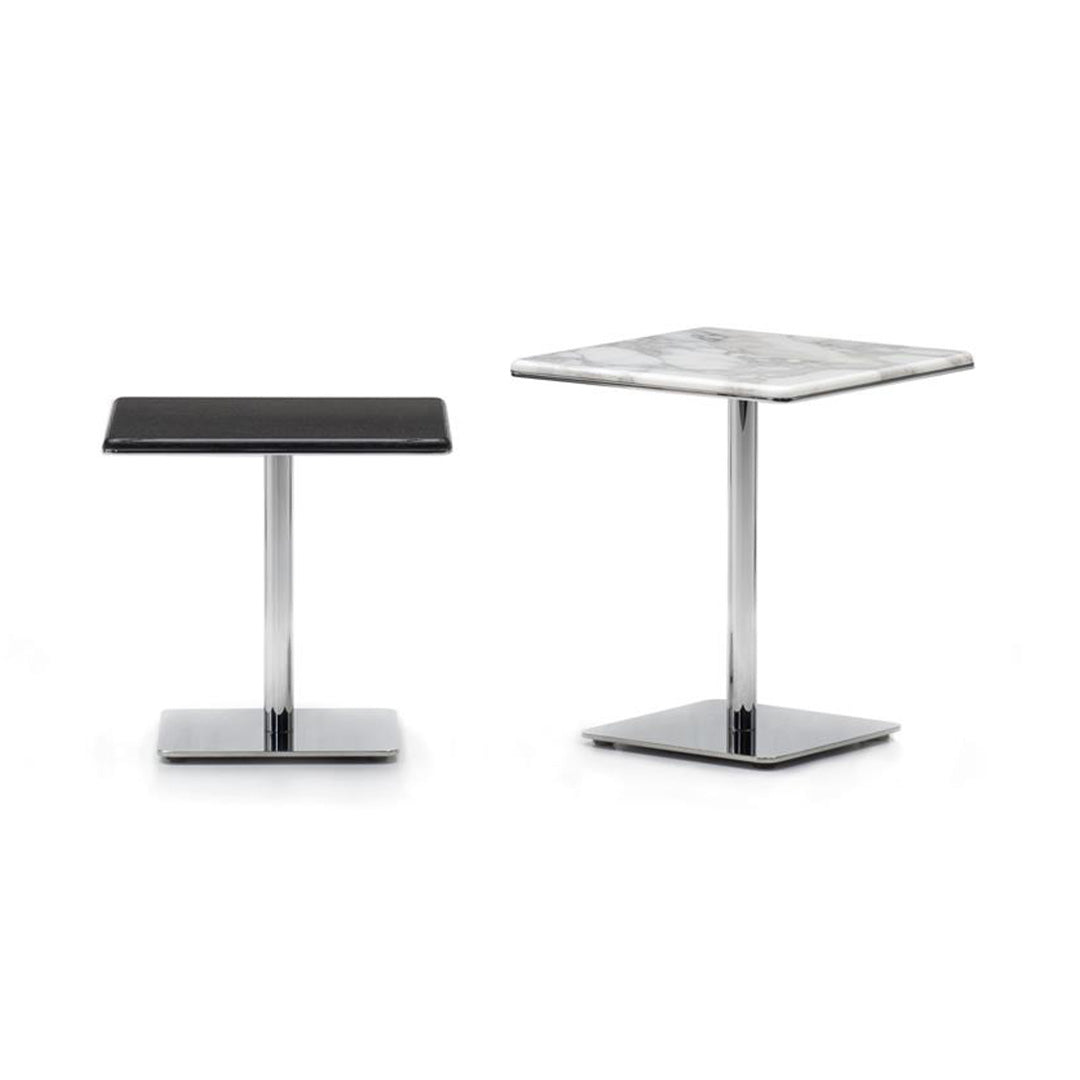 Kyle stolić, s minimalističkim modernističkim dizajnom i pažnjom posvećenom proporcijama i detaljima. Sastoji se od kromirane metalne konstrukcije i kvadratne ploče zaobljenih rubova. Drvena verzija ploče od brušenog hrasta lakiranog u Moka nijansi ističe se bogatom teksturom, dok luksuzna varijanta uključuje ploču od Calacatta mramora.