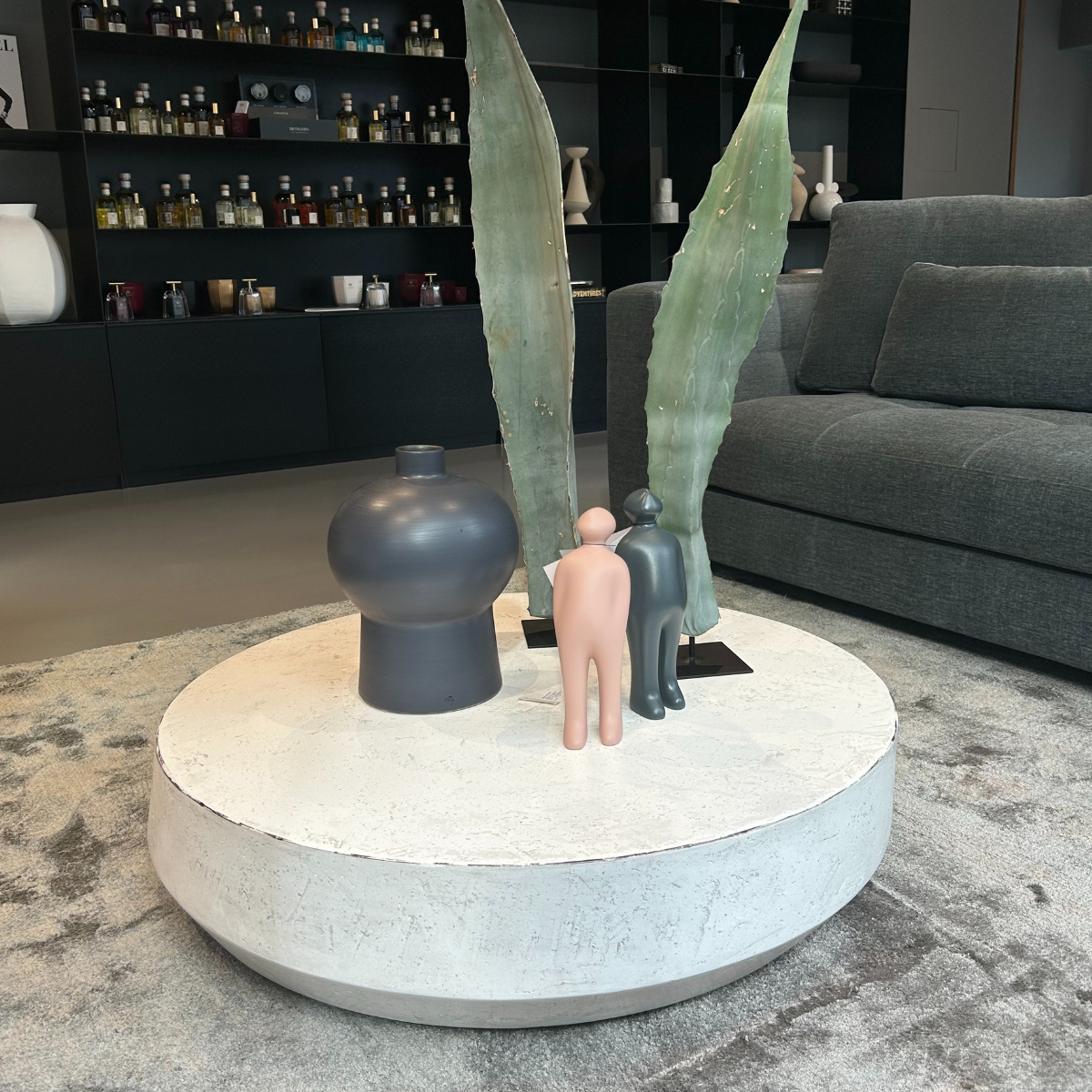 Stolić za kavu od krutog poliuretana prekrivenog špatuliranim vapnom u boji "maslaca".