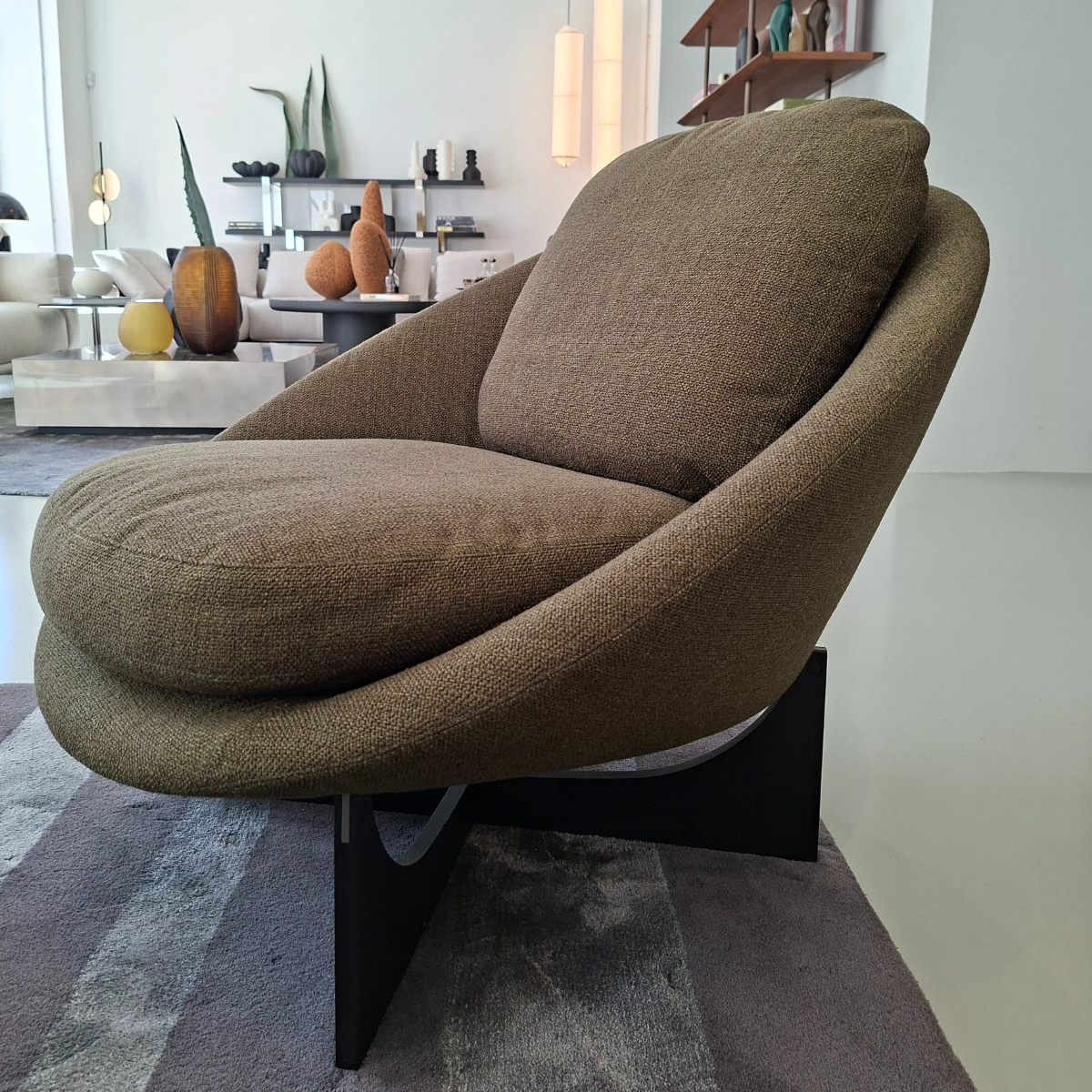 Fotelja Lido, koju je dizajnirao talijansko-danski dvojac GamFratesi, prepoznatljiva je po svom ugodnom, gnijezdu sličnom obliku. Zakrivljena silueta i udobni, ergonomski jastuci stvaraju elegantan, a istovremeno funkcionalan komad namještaja.