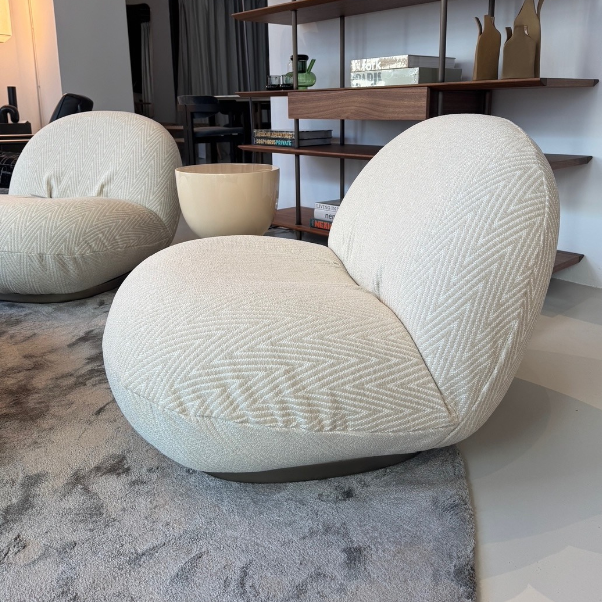 Pacha Lounge Chair ikona je modernog namještaja koja spaja udobnost i skulpturalnu eleganciju. Zaobljeni, organski oblik i niski profil donose osjećaj opuštenog, suvremenog života, dok blago podignuta baza i precizni šavovi naglašavaju profinjenost dizajna.