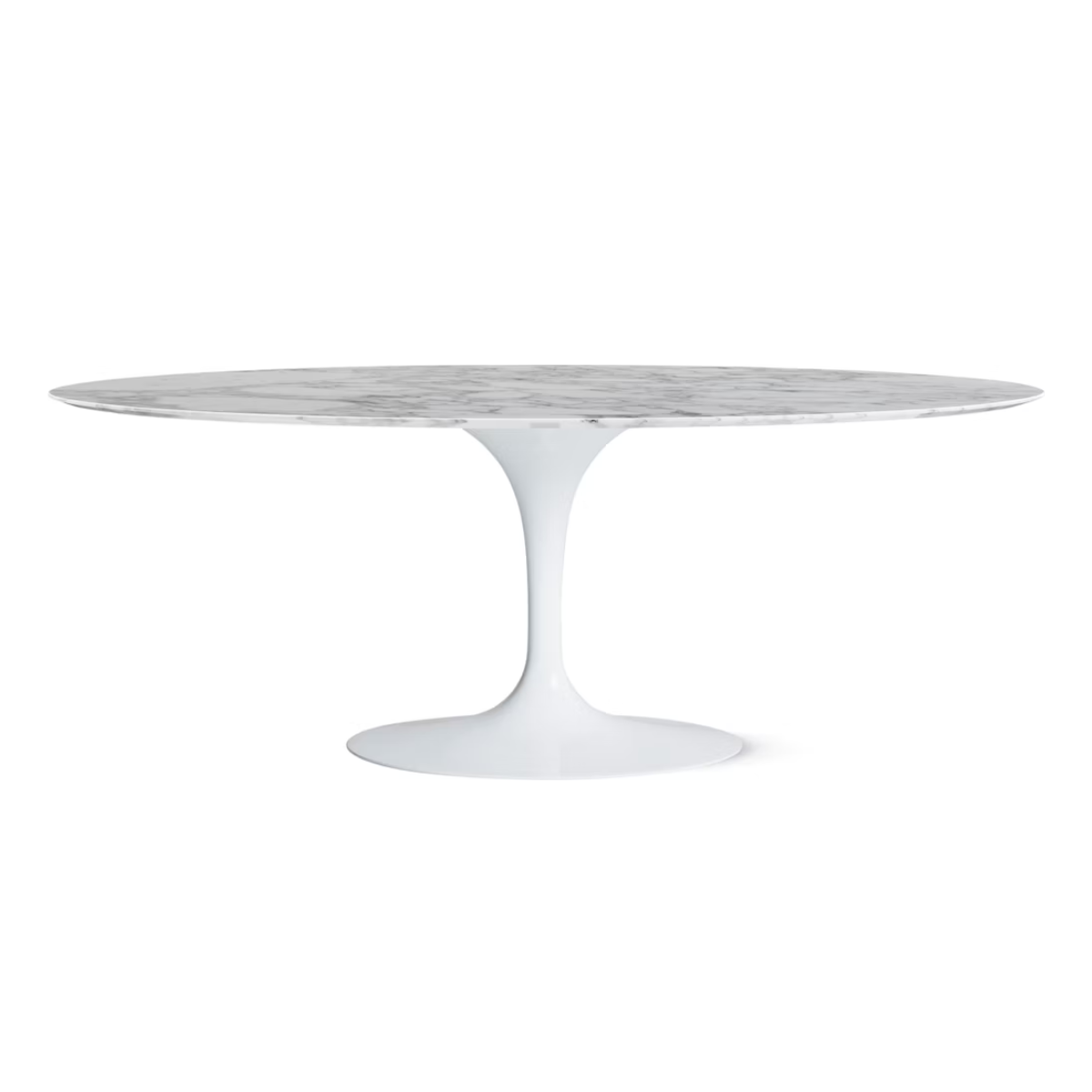 Ploča Saarinen blagovaonskog stola izrađena je od mramora koji je premazan prozirnim poliesterom kako bi se spriječile mrlje povezane s uporabom.