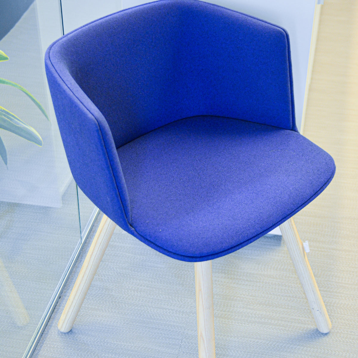 Stolica Cut u tkanini odlikuje se udobnošću i toplinom koju pruža njezina mekana, tapecirana površina. Tkanina obavija cijelu sjedeću plohu i naslon, dajući stolici ugodan, taktilni osjećaj te istovremeno unoseći eleganciju i domaću atmosferu u prostor.