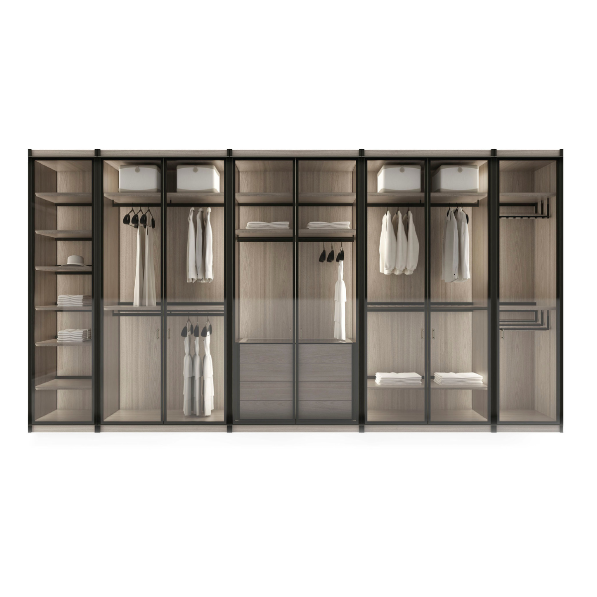 Spavaći prostor nadilazi tradicionalni koncept spavaće sobe i postaje intiman ambijent, krojen prema mjeri, osmišljen kako bi odražavao osobni identitet i pružio mjesto za svaki osobni, čak i skriveni predmet. Walk-in ormar od drva jasena sastoji se od pojedinačnih ili dvostrukih elemenata, s krilnim vratima od stakla ili drva te integriranim LED sustavom rasvjete.