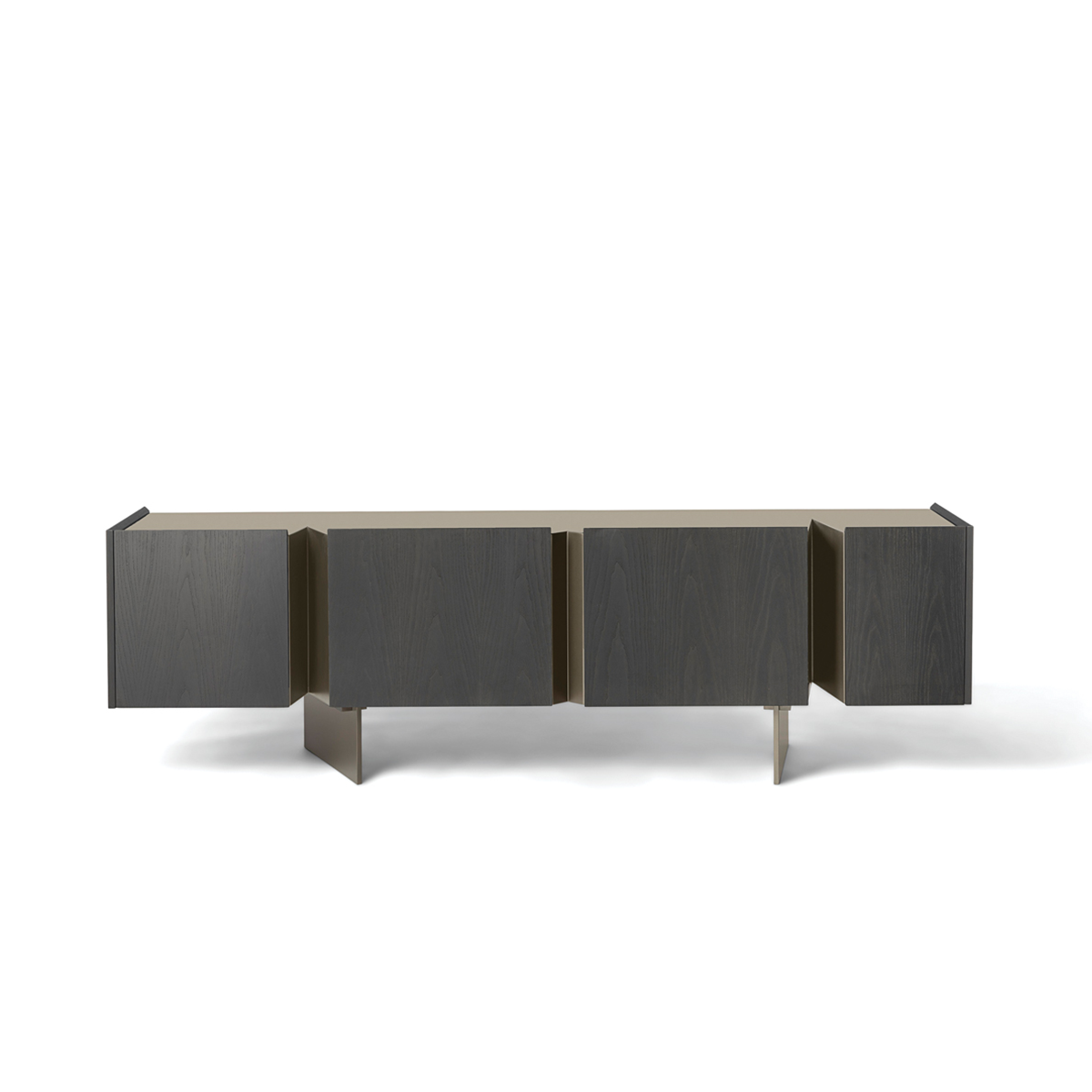 komoda s nogama, struktura C48 bronzo chiaro, vrata i bočne stranice T15 noir, unutrašnjost bronzo chiaro, police T150 noir, noge od metala u svijetloj brončanoj boji