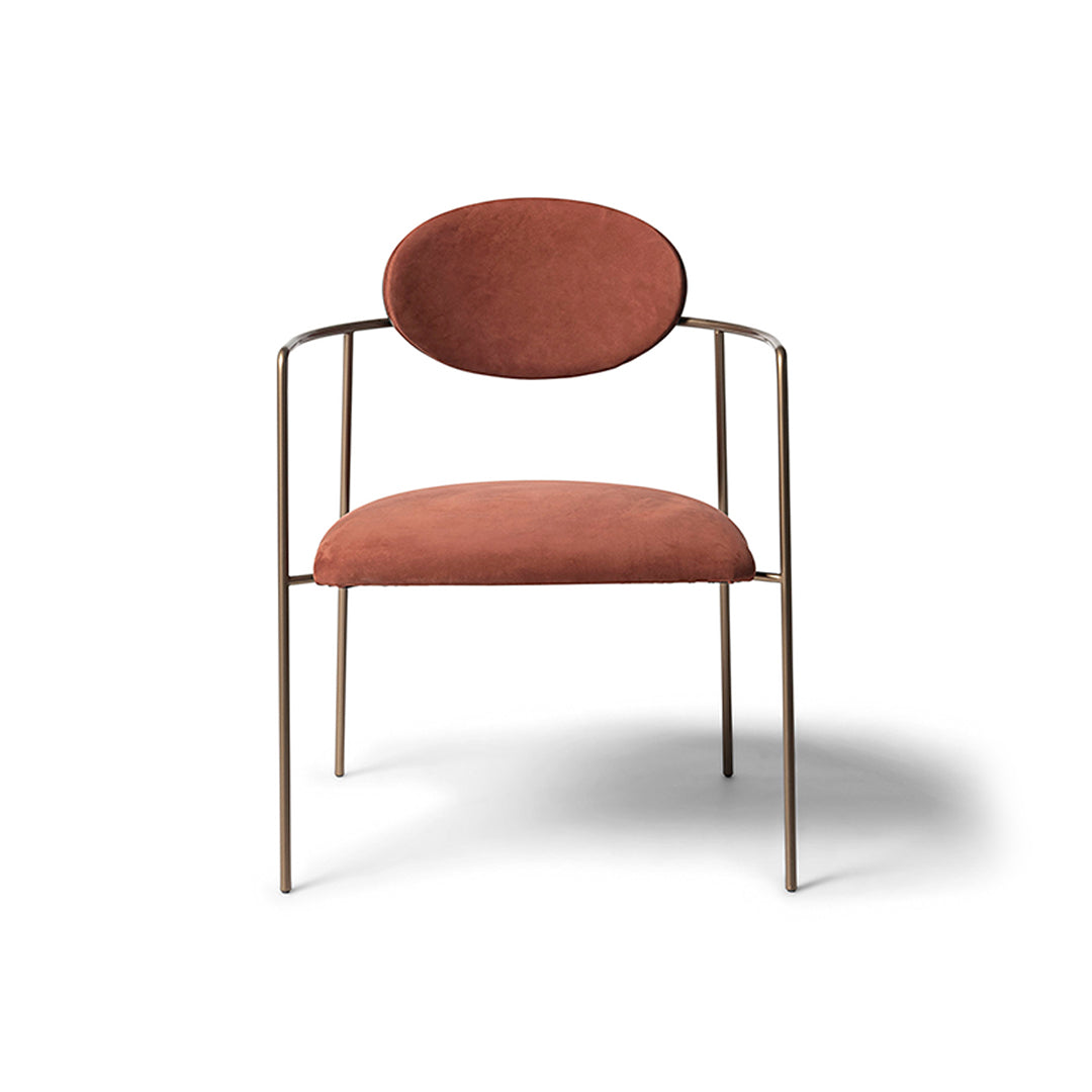 Stražnji dio naslona T150 noir, struktura od svijetlog brončanog metala, sjedište presvučeno kožom P38 nabuk col. 6, stražnji dio naslona u koži P38P nabuk pois printed col. 6