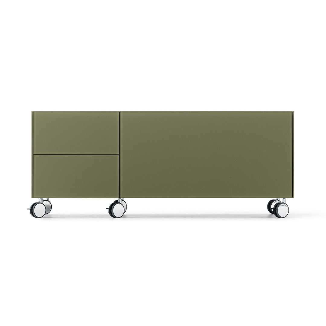 • Jedinica na kotačićima: 137 × 51 × 56 cm, staklo u saten maslinasto zelenoj boji