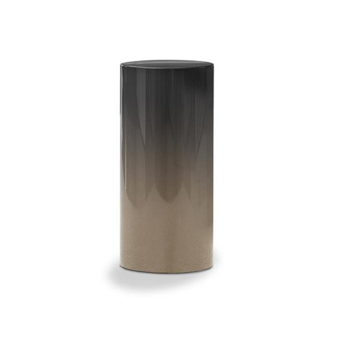 Available in two different heights, 45 or 55 cm, it is made of polished varnished metal, with a 27 cm diameter, and comes in a wide variety of existing finishes to which the new Chestnut and Malachite lacquer variants have been added. The Wood version has a curved wooden structure with a diameter of 25 cm and is finished in Liquorice coloured open-pore lacquered ash