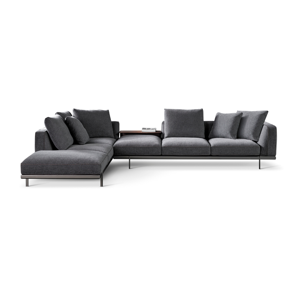 Elegant character, light construction and luxurious upholstery are the main features that make Phil a suitable piece of furniture for any living space. The clean and strict lines of this sofa's design are best highlighted by the detail on the edges of the cushions - an original decorative grosgrain border, which can be made in a contrasting color or tone-on-tone, for a harmonious and uniform impression.
