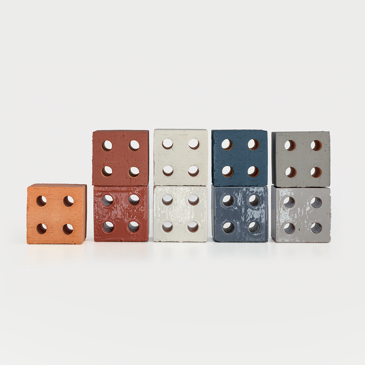 DESCRIPTION: Bloc is a terracotta brick produced with the artisanship extrusion process. It’s a three dimensional element conceived to build architectural and decorative structures. It features a Natural version and a palette of four shades - Pearl, Blue, Red and Grey - declined in both Matt and Glossy finishes.