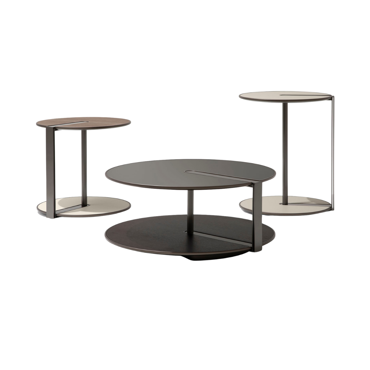 Referring to the tradition of carpentry, Clamp is reminiscent of a carpenter's vise and reinterprets it in the construction of a club table. The collection includes a series of club tables with metal construction.