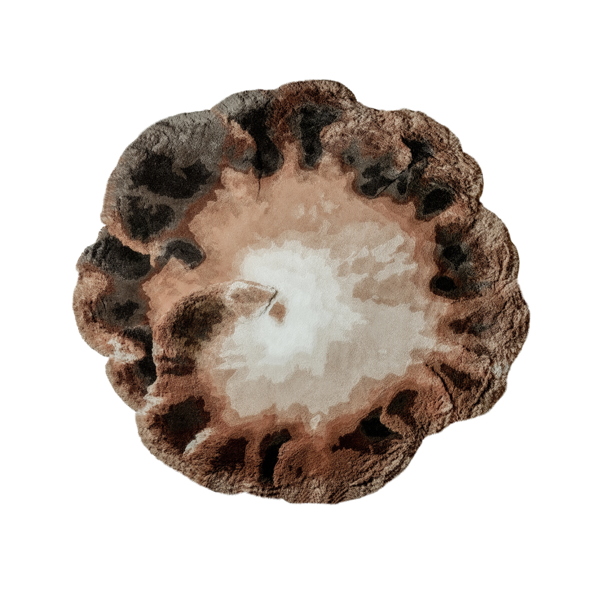 The name of the collection is M-SHWY (pronounced MS Highway), which is an acronym for Mycorrhizal Super Highway (or more simply — mushroom superhighway). Mary Lennox Studio wanted to show a bird's eye view of the oyster mushroom. This rug is made of CHLOE quality — soft New Zealand wool combined with shiny Tencel Lyocell fibers that give the rugs a subtle sheen.