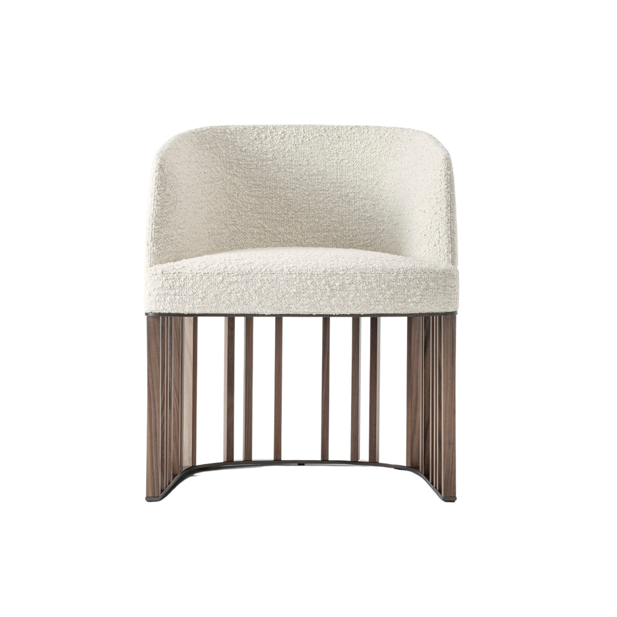 Stolica s niskim naslonom od poliuretanske pjene i aluminijskom bazom s umetcima od masivnog orahova drva Canaletto. Letvice obložene orahovim drvom dodatno naglašavaju eleganciju modela Hero.