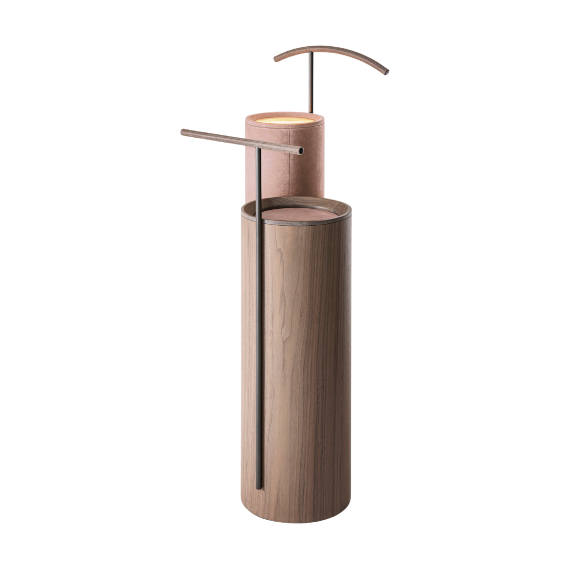 Skulpturalna vješalica koja upotpunjuje spavaći prostor i ulazni dio, oblikovan kao kompaktan otok sastavljen od dvaju cilindara različitih visina i šipki obloženih protukliznom kožom. Stalak se sastoji od nižeg cilindra od drva oraha Canaletto (ukupna visina sa šipkom 102,5 cm) i višeg cilindra obloženog kožom (ukupna visina sa šipkom 123 cm), s gornjom pločom od oniksa i povišenim rubom. Dostupan je s opcijom pozadinskog osvjetljenja. Opremljen je metalnom šipkom za hlače i metalnom šipkom za odijela, obje presvučene protukliznom kožom.