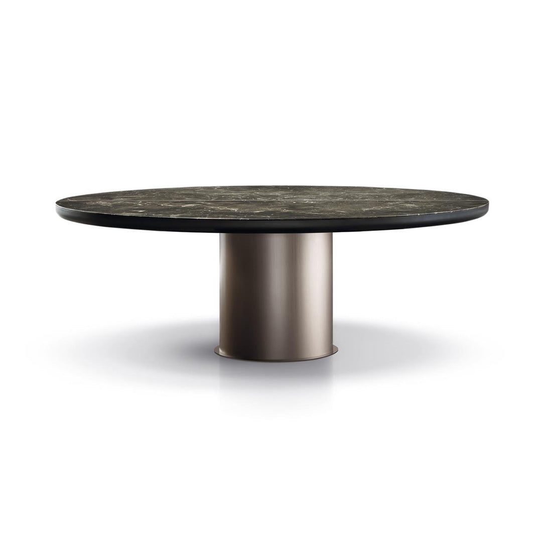 Kolekcija blagovaonskih stolova čiji se suštinski oblik vješto izražava kroz harmoničan dijalog između šara mramornih ploča i zaobljenog postolja koje ih nosi.